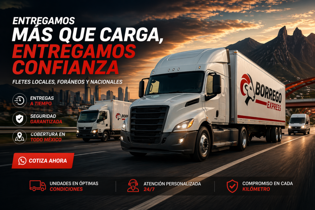 En Borrego Express somos una empresa especializada en transporte de carga, comprometida con ofrecer soluciones logísticas confiables, seguras y eficientes.